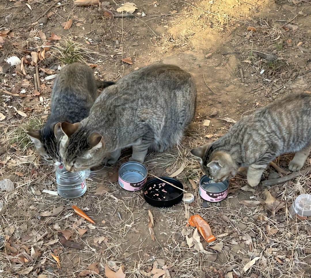 身邊不少朋友勸我,要是實在心疼,不如把它們帶回家。可家裡空間有限,實在沒法給三隻小家夥一個安穩的住處,我能做的,就是用這樣笨拙又執著的方式,默默守護著它們。每天的投喂不只是填飽它們的肚子,更是一場雙向的奔赴——我蹲在一旁看著它們進食,它們吃完後不會立刻跑開,偶爾會用腦袋輕輕蹭我的褲腿,或是在我腳邊慢悠悠踱步,那份小心翼翼的親近,總能驅散我一天的疲憊。