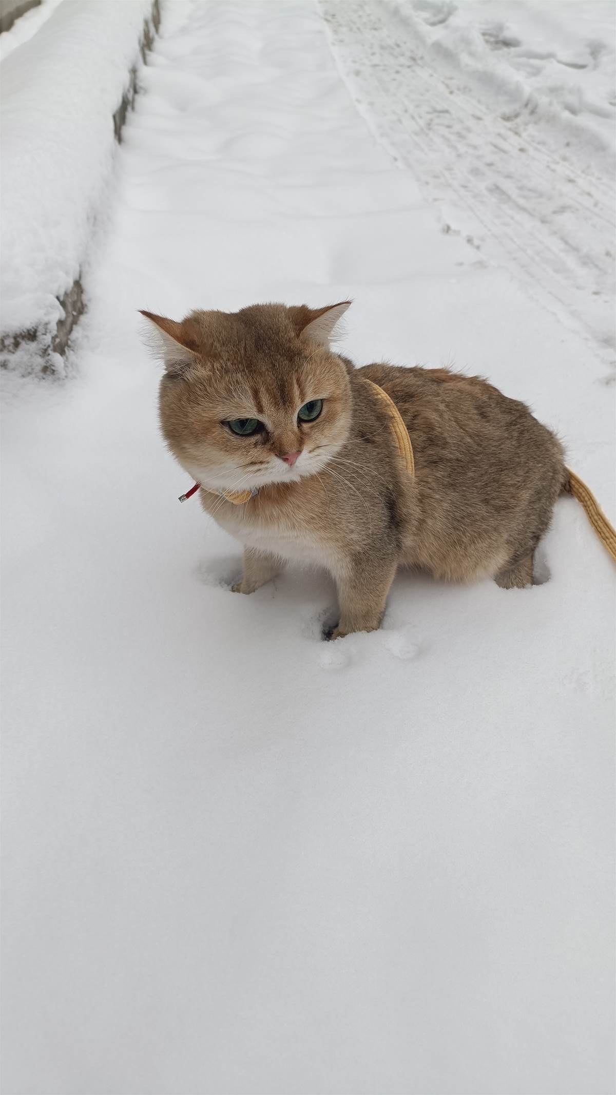 我家貓咪是個「雪景控」——陽台看雪、飄窗賞雪,甚至跳上窗台盯著雪花癡迷發呆。看著牠向往的眼神,我突發奇想:「不如帶牠下樓,讓牠真實感受雪的魅力吧!」怕牠跑丟,我還特意繫上牽引繩,滿心期待牠在雪中蹦跳的可愛模樣。