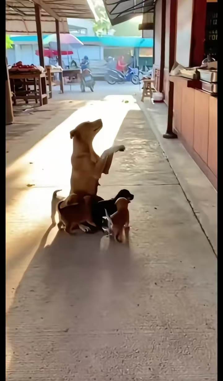 店門外卻來了幾位特別的「客人」——一隻瘦弱的流浪狗媽媽,領著幾隻蹣跚的小奶狗,怯生生地停在臺階前。接下來的一幕,讓大叔瞬間紅了眼眶:狗媽媽忽然用後腿站穩,兩隻前爪合攏,朝著他一遍又一遍地鞠躬作揖,眼神裡滿是哀求與卑微。那一瞬間,無需言語,所有人都懂了:牠不是在為自己乞食,是在為身後那一群孩子求一頓活命的飯。
